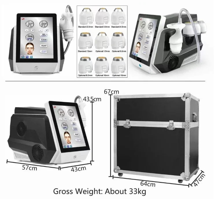 În plus, confortul și siguranța clienților sunt prioritare. Cu o platformă de operare simplă și un afișaj intuitiv de 15 inch, personalul salonului poate utiliza Frozen Hifu eficient, îmbunătățind productivitatea și satisfacția clientului. Cu un design compact (64×47×67 cm) și o greutate gestionabilă (aproximativ 33 kg), aparatul este o investiție practică și rentabilă pentru creșterea afacerii. În concluzie, Frozen Hifu nu este doar un dispozitiv tehnologic avansat, ci o oportunitate pentru saloane de a oferi servicii de înaltă calitate cu beneficii evidente pentru clienți și afacere.