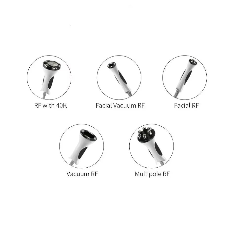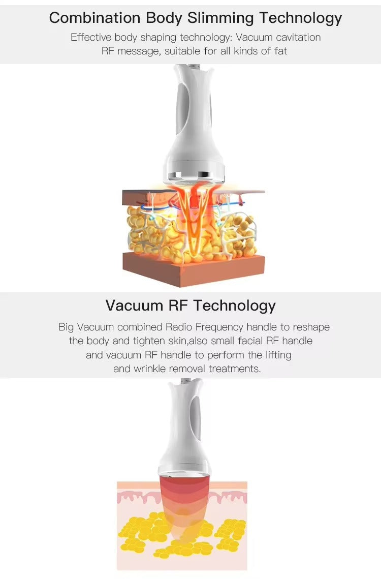 - Capat de lucru mare de Radiofrecventa si Vacuum pentru remodelare corporala si tonifiere, capat de lucru mic Radiofrecventa si Vacuum pentru fata antirid si lifting.