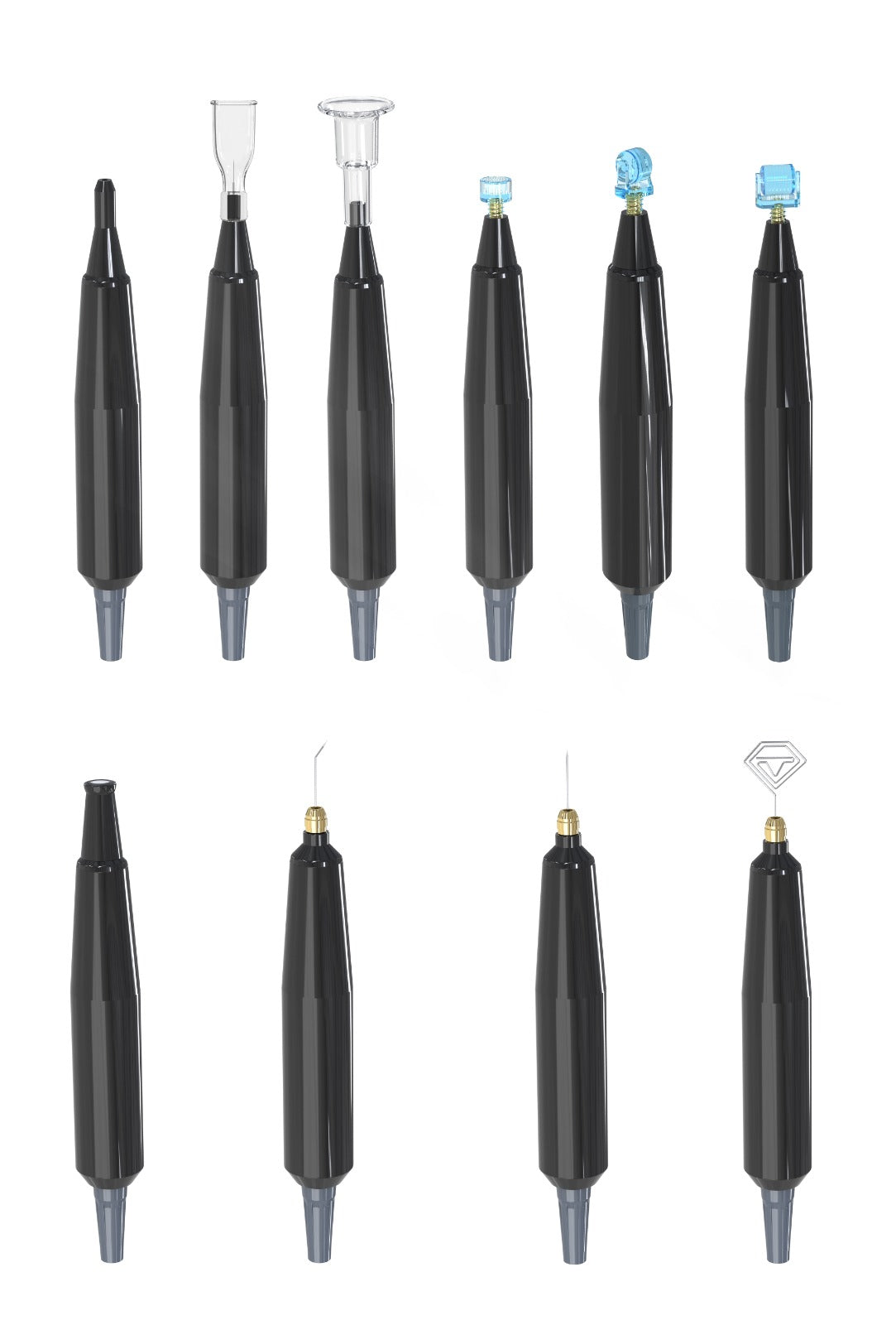 Dispozitivul Cold Plasma ProSkin+ este echipat cu o gamă variată de capete interschimbabile, special concepute pentru tratamente specifice. Fiecare cap are un rol bine definit în îngrijirea și rejuvenarea pielii:
